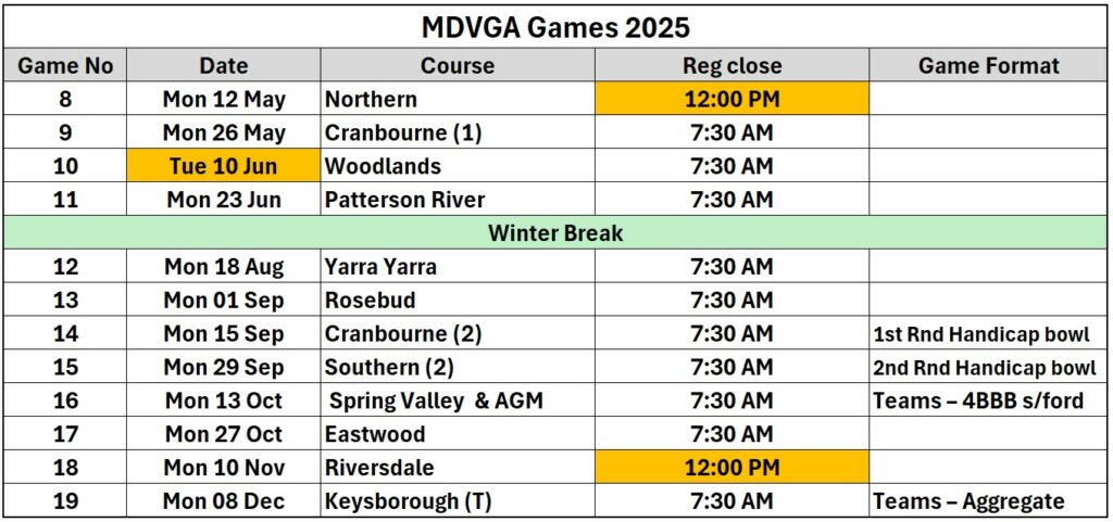 The Challenge has been run every year since 2010 (except COVID in 2021) with Melbourne Vets runaway champions for 11 of those years. Naturally we want to keep up our “unblemished” record and so I am looking for 50 players, with the last 10 bookings to form a reserve for the inevitable withdrawals as we get closer to the event. 40 members will be divided into 20 teams and play 4BBB against 20 teams from the Hume Vets.