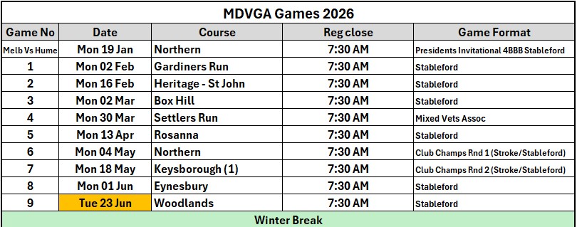 The key message is, for each event, once the booking sheet closes and the MDVGA advises the relevant golf club of our final numbers, in accordance with the T&C’s of the applicable golf club, we [MDVGA} are liable for the full cost for the number of players advised. You will appreciate ‘no shows’ on the day with, in some cases, no communication whatsoever, can leave our club financially disadvantaged.